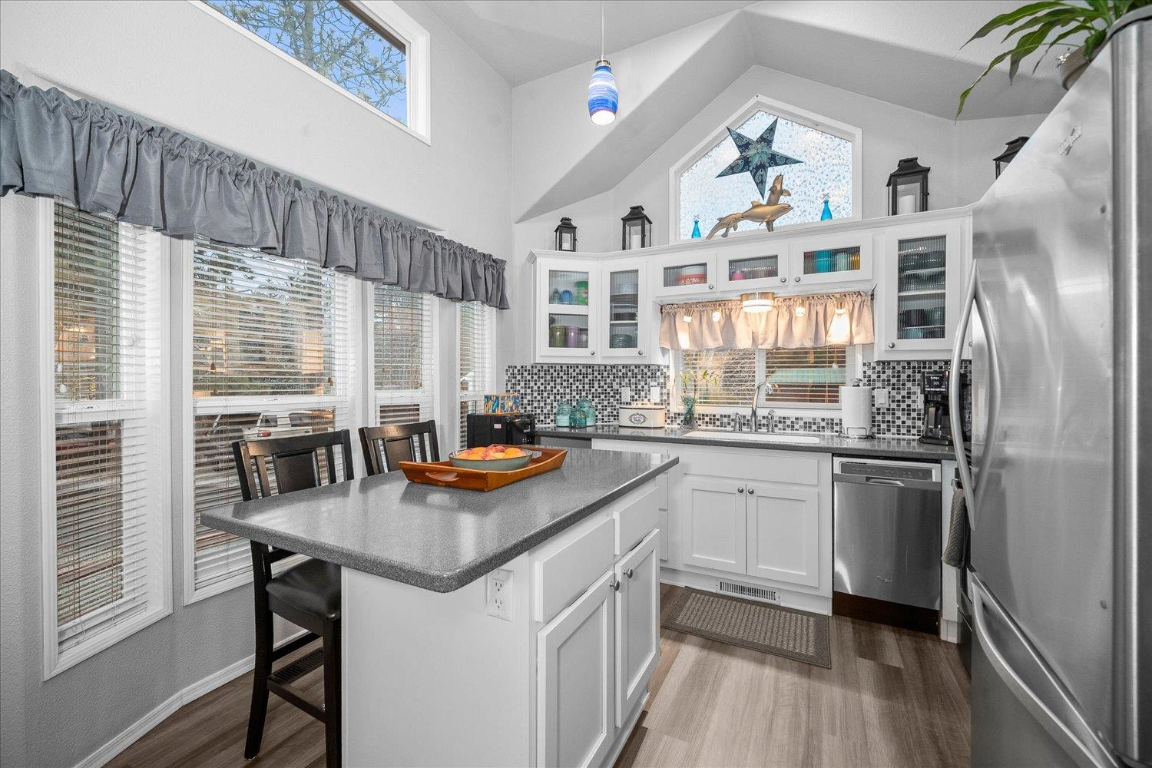 Stunning 2016 Skyline Park Model home. Home features: Cathedral ceilings, SS appliances, new LVP flooring installed 1/2026, open concept kitchen and living, and a roomy loft for additional living space. Property is fully fenced, private hot tub, shed with laundry, sink and toilet.