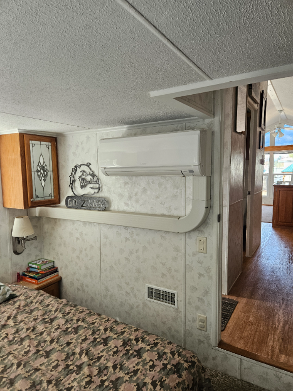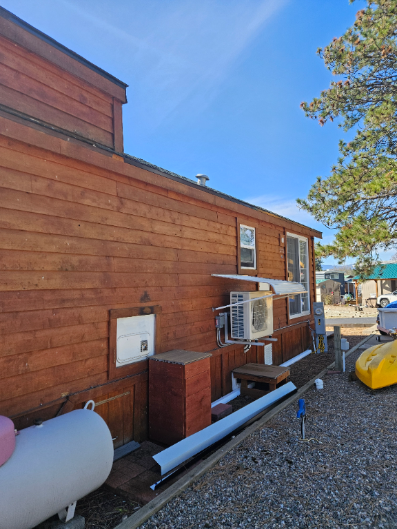The home features a full bathroom with sink and stand-up shower, and year-round comfort is ensured with a propane furnace and a Mitsubishi dual-head heat/AC pump servicing both the main living area and lower bedroom.